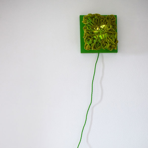 Finestra sull'anima - Vitalità, scultura tessile, anno 2022, illuminazione a led 12 volt, dimensioni 30x30x13.5 cm.