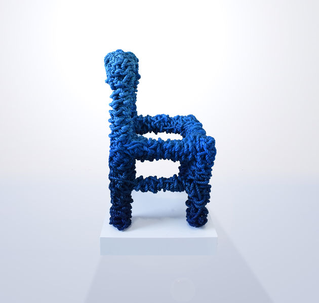 Alchemy throne in blue, textile sculpture, year 2022, dim. 19.7x19.7x31.5 inches.